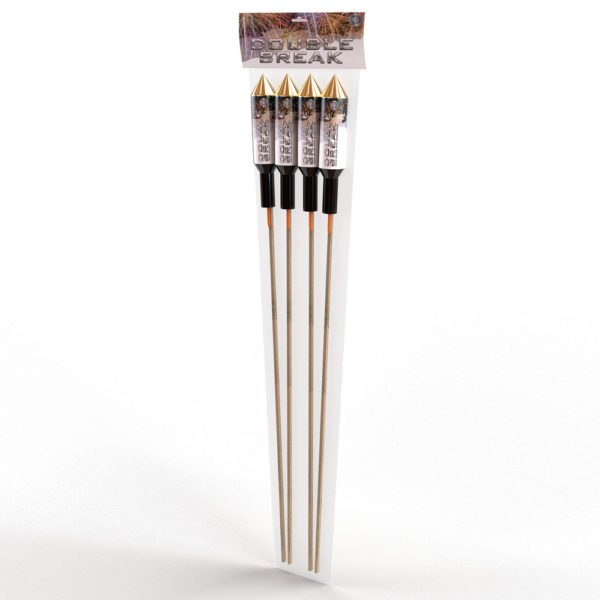 When it comes to rocket fireworks, the Double Break stands out as an exceptional choice for enthusiasts seeking an extraordinary display. These four stunning 1.3g effect double break rockets. Offers you twice the bang for your buck. With excellent bursts and effects. Including gold willow and green stars. Gold willow and blue stars. Brocade crown with crackle flower. Finally, brocade crown with red stars. While each rocket contains a net explosive content of 65gm.