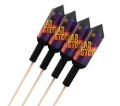 Enjoy our Solar Storm Rocket Pack, While each of these four rockets. Produce a big bursting effect that delivers a night sky full of stars. Firstly with a stunning brocade crown with bright white strobe stars. Secondly, a vast golden crackling cauliflower. Thirdly, a half blue peony with tail, half red/golden strobe. And last but not least a vibrant red, green and blue peony with white star strobe. While each rocket produces a stunning twin effect. With one stunning effect exploding above the other.